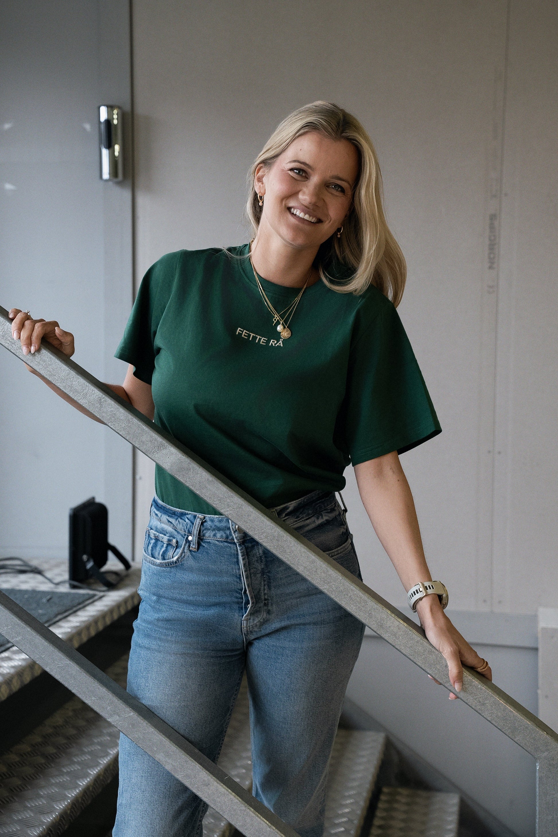 NY FÄRG! Grön T-shirt med guldbroderad text på bröstet.