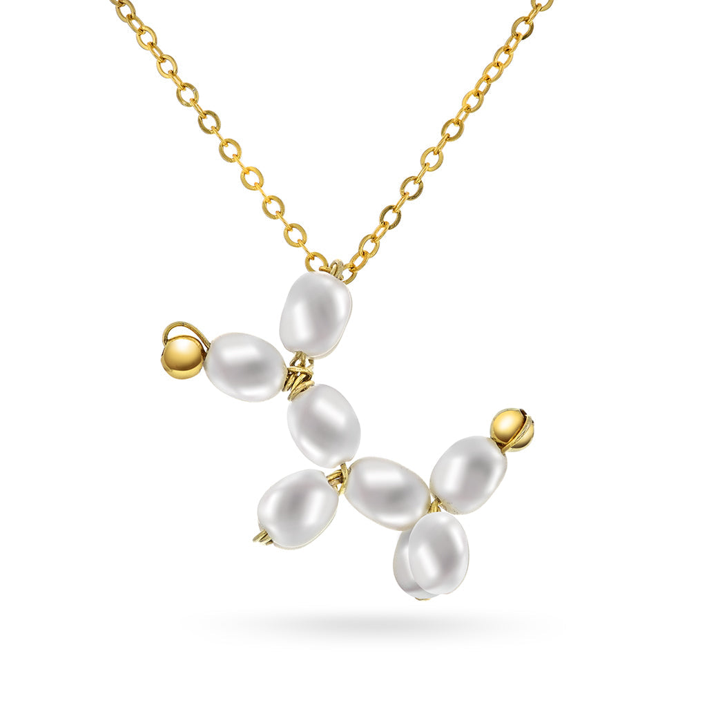 Hund gjord av sötvattenspärlor och förgyllt silver