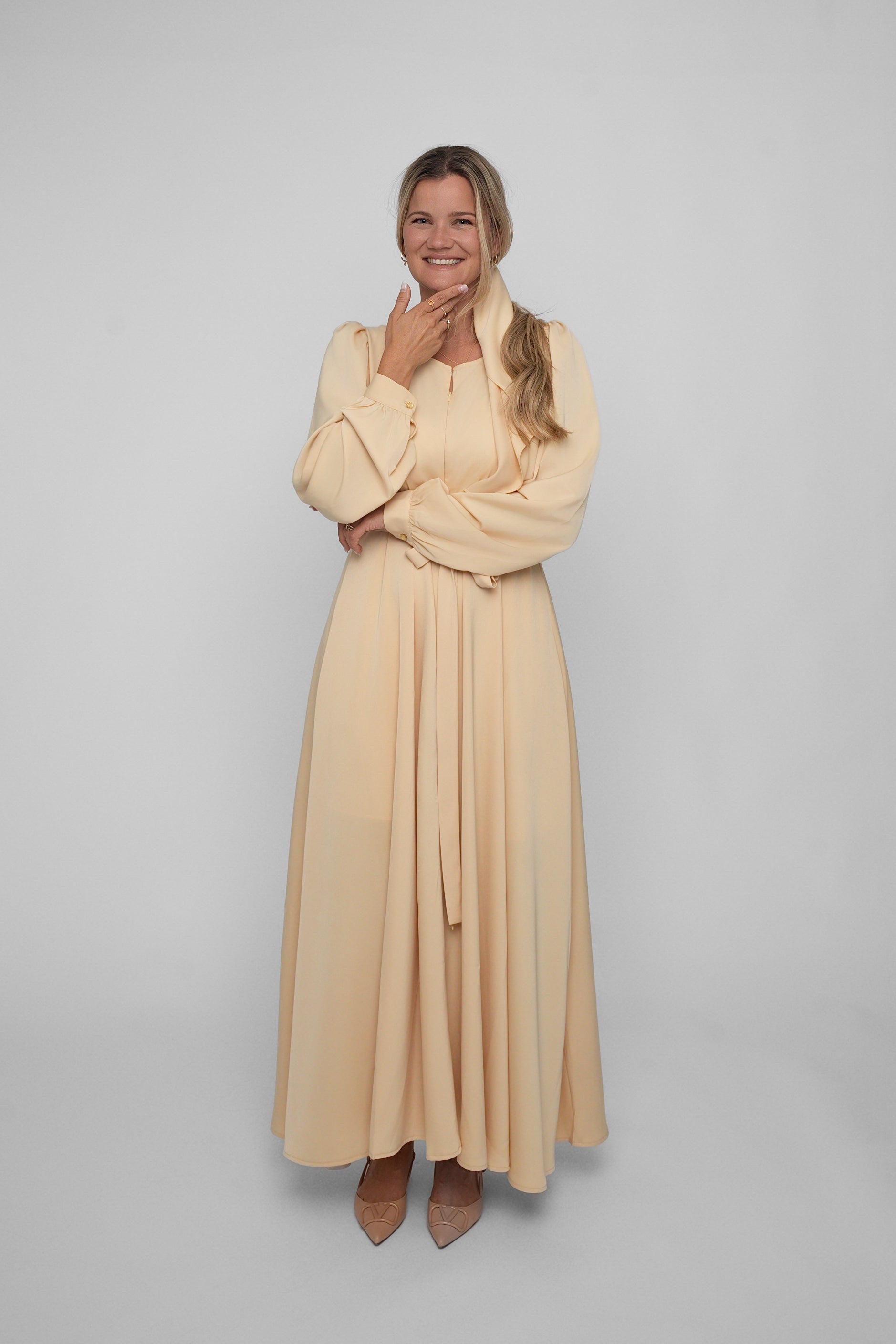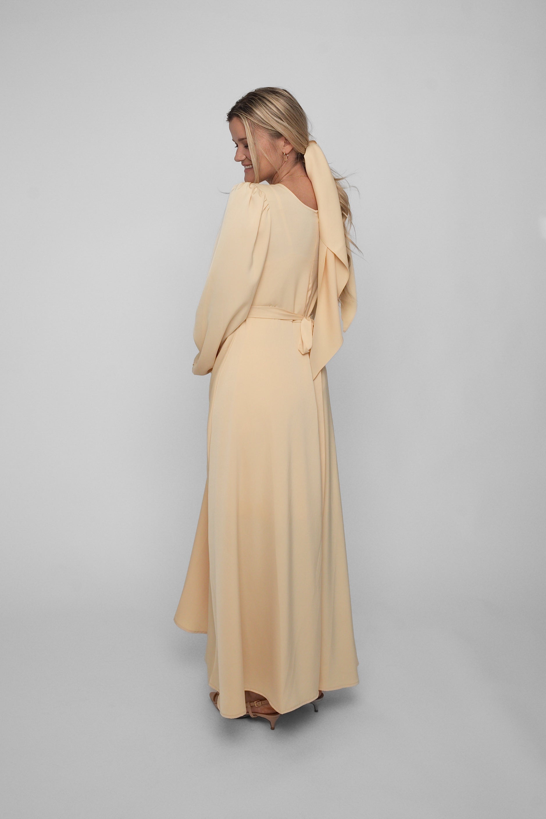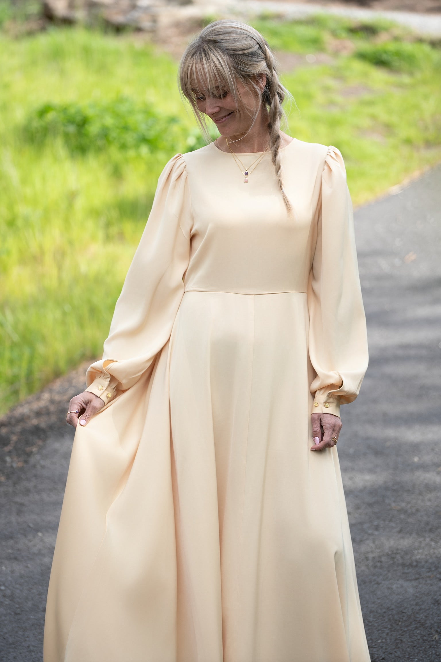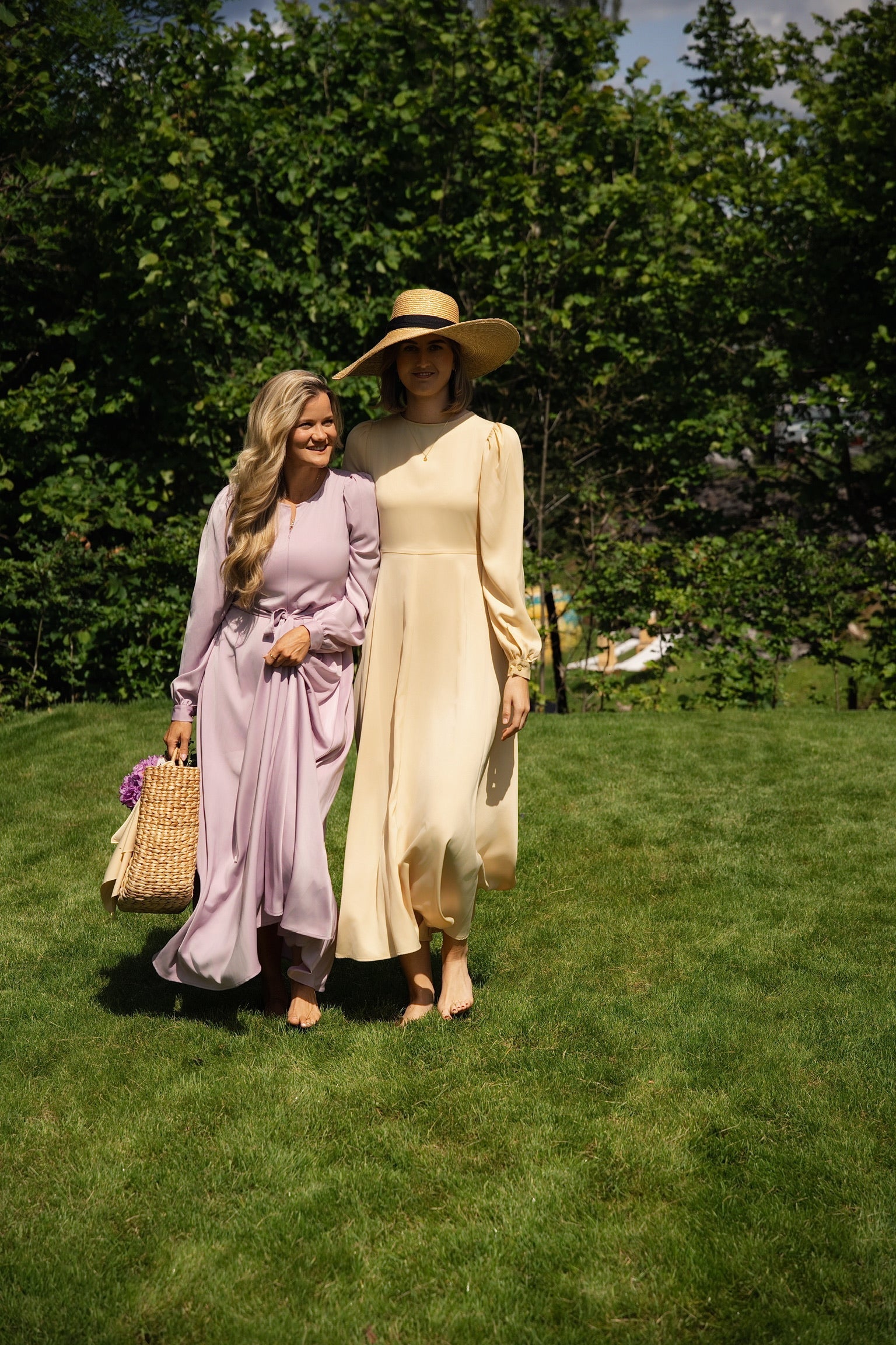 Den glänsande satinen faller mjukt och vackert runt kroppen och ger dig en känsla av lyx – oavsett om du ska på bröllop, dop, sommarfest eller bara vill glänsa lite extra en vanlig dag.