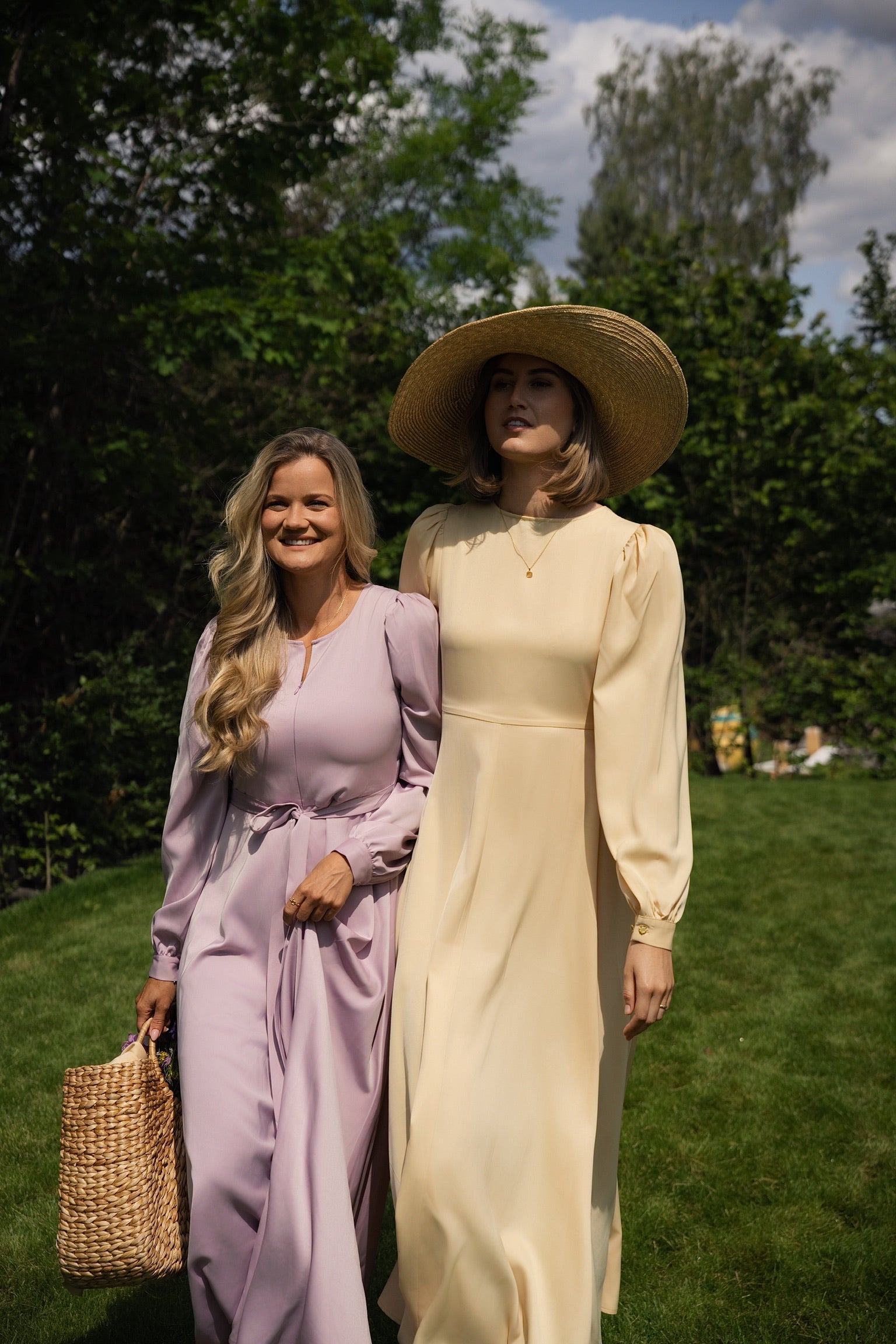 Madikken-klänningen i lila satin är skapad för dig som älskar tidlös elegans med en lekfull twist.