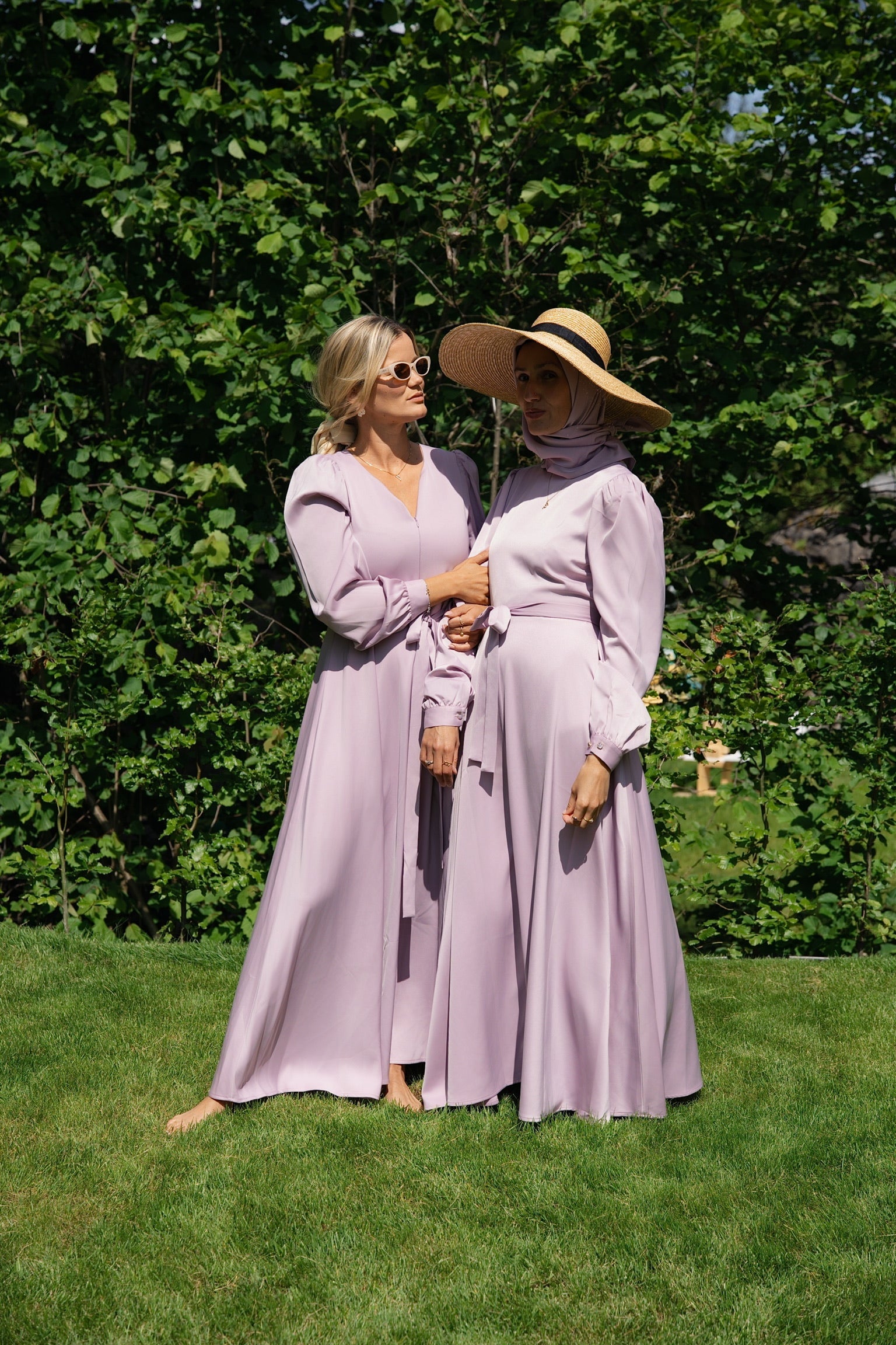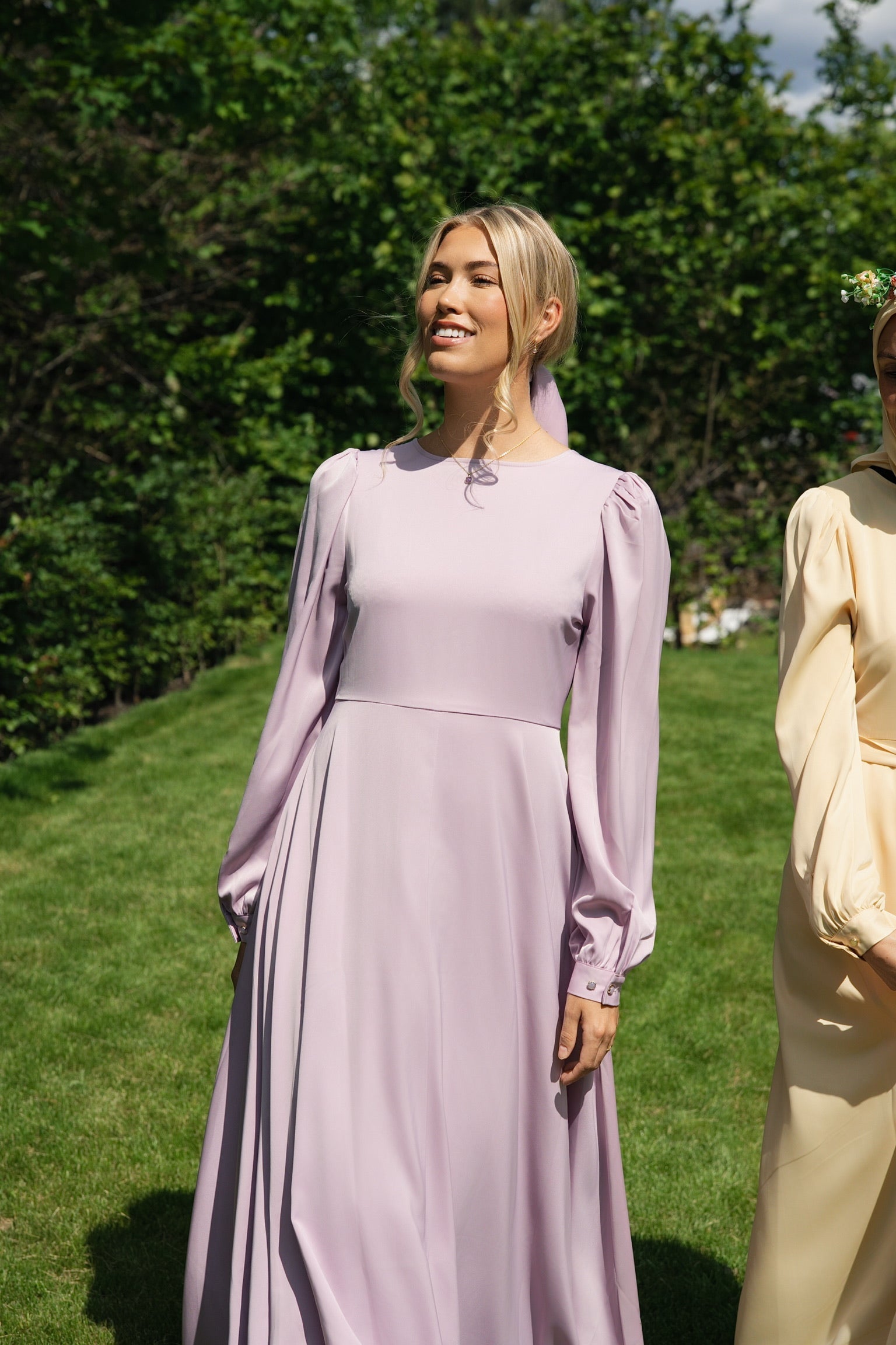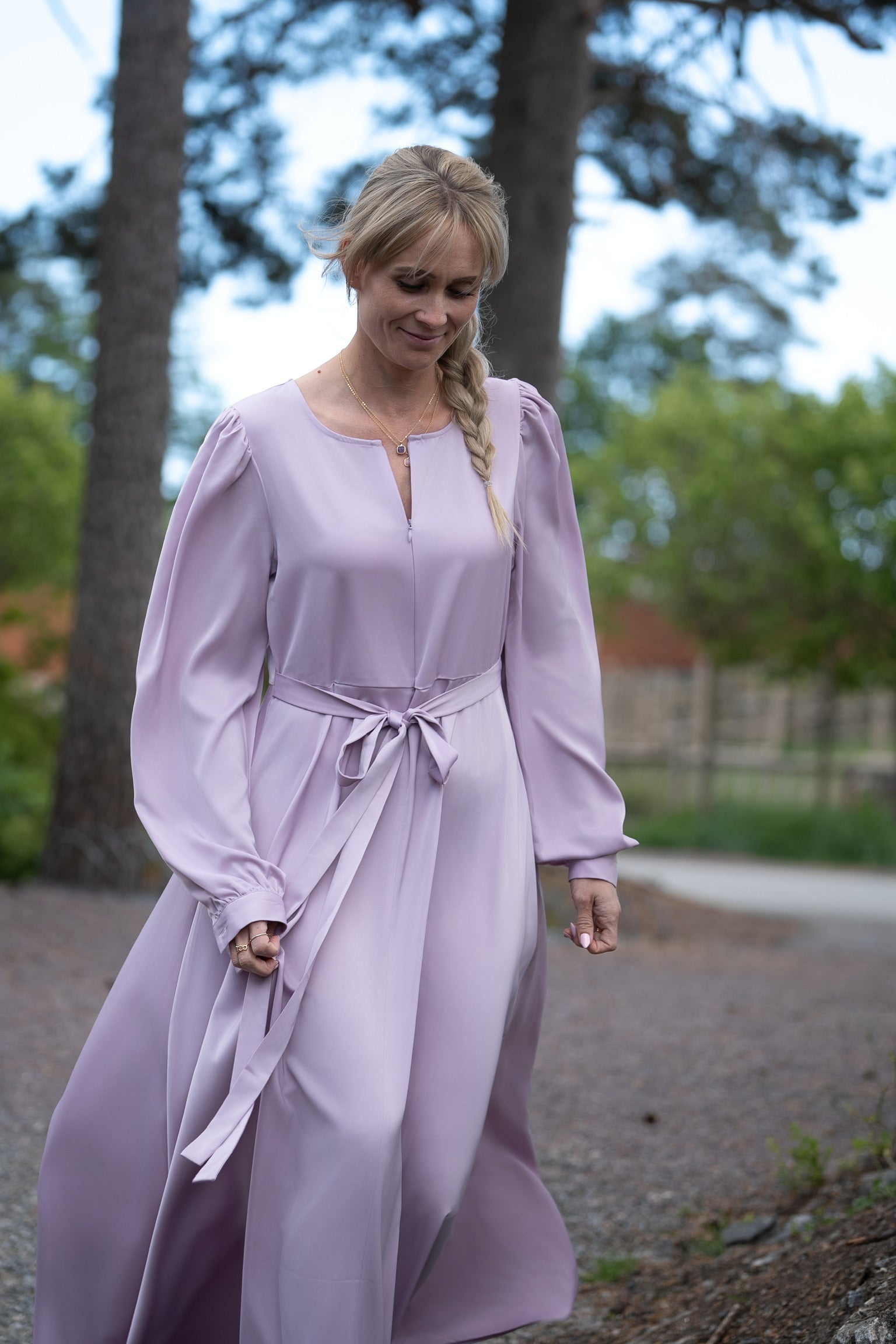 Madikken-klänningen i lila satin är skapad för dig som älskar tidlös elegans med en lekfull twist.