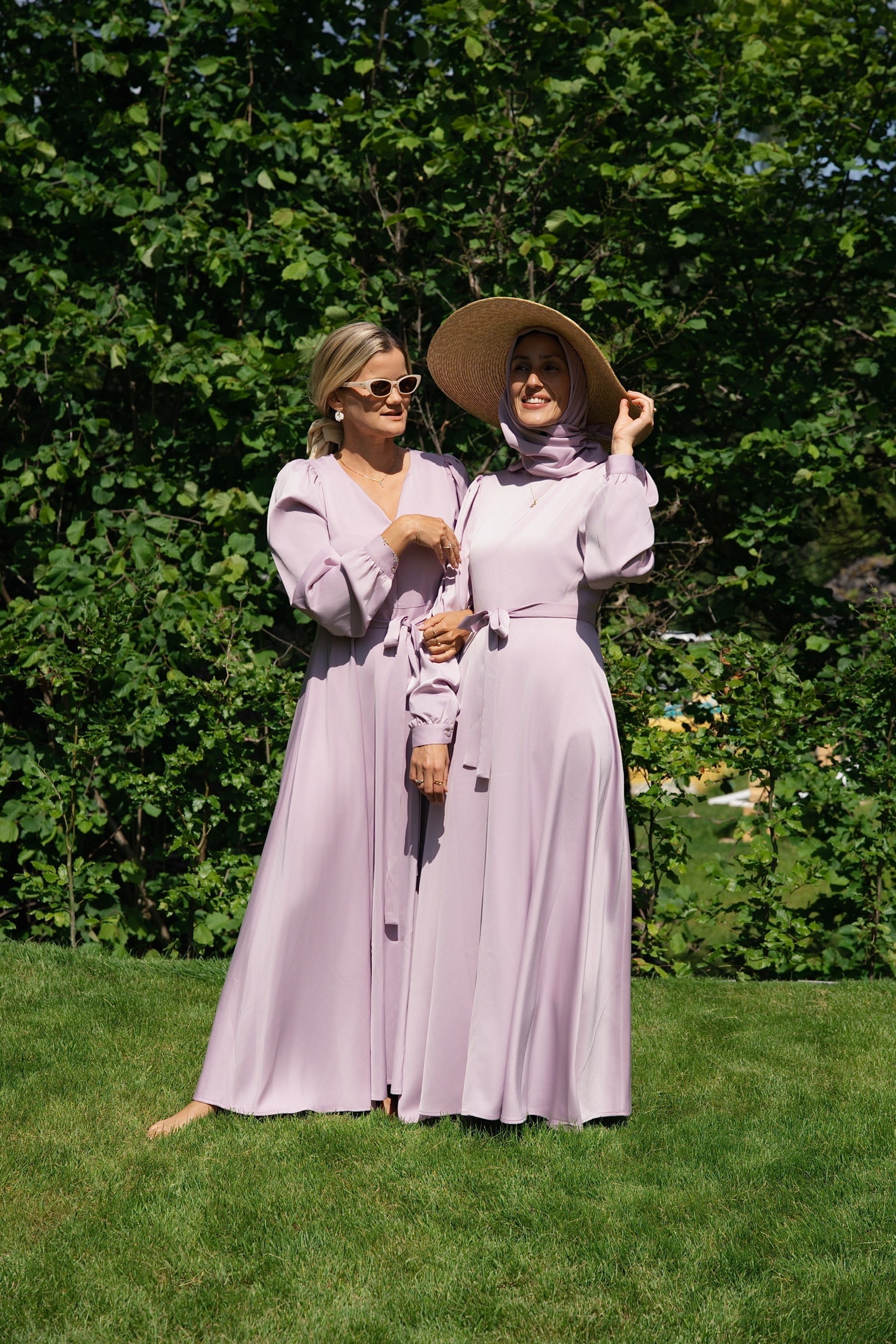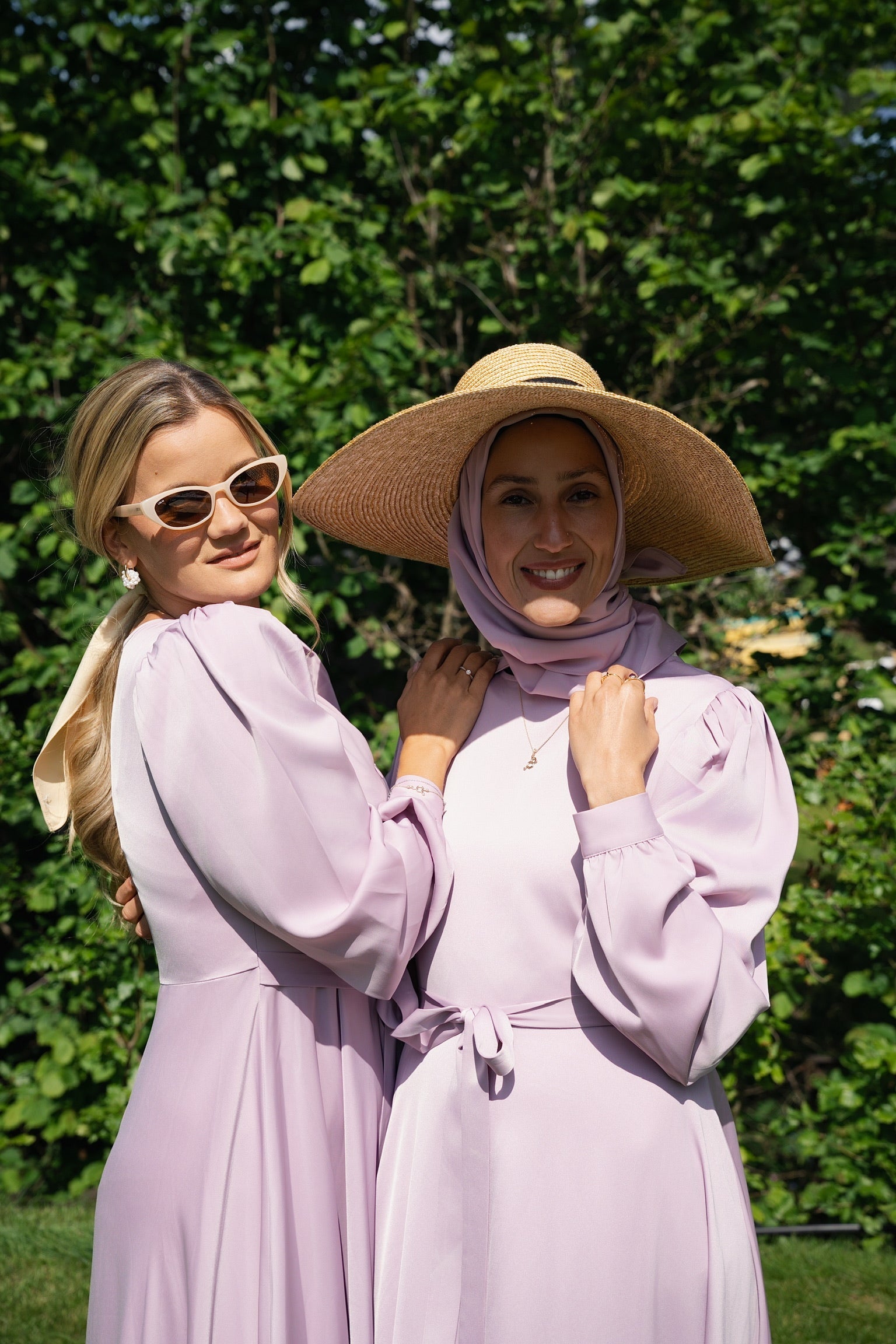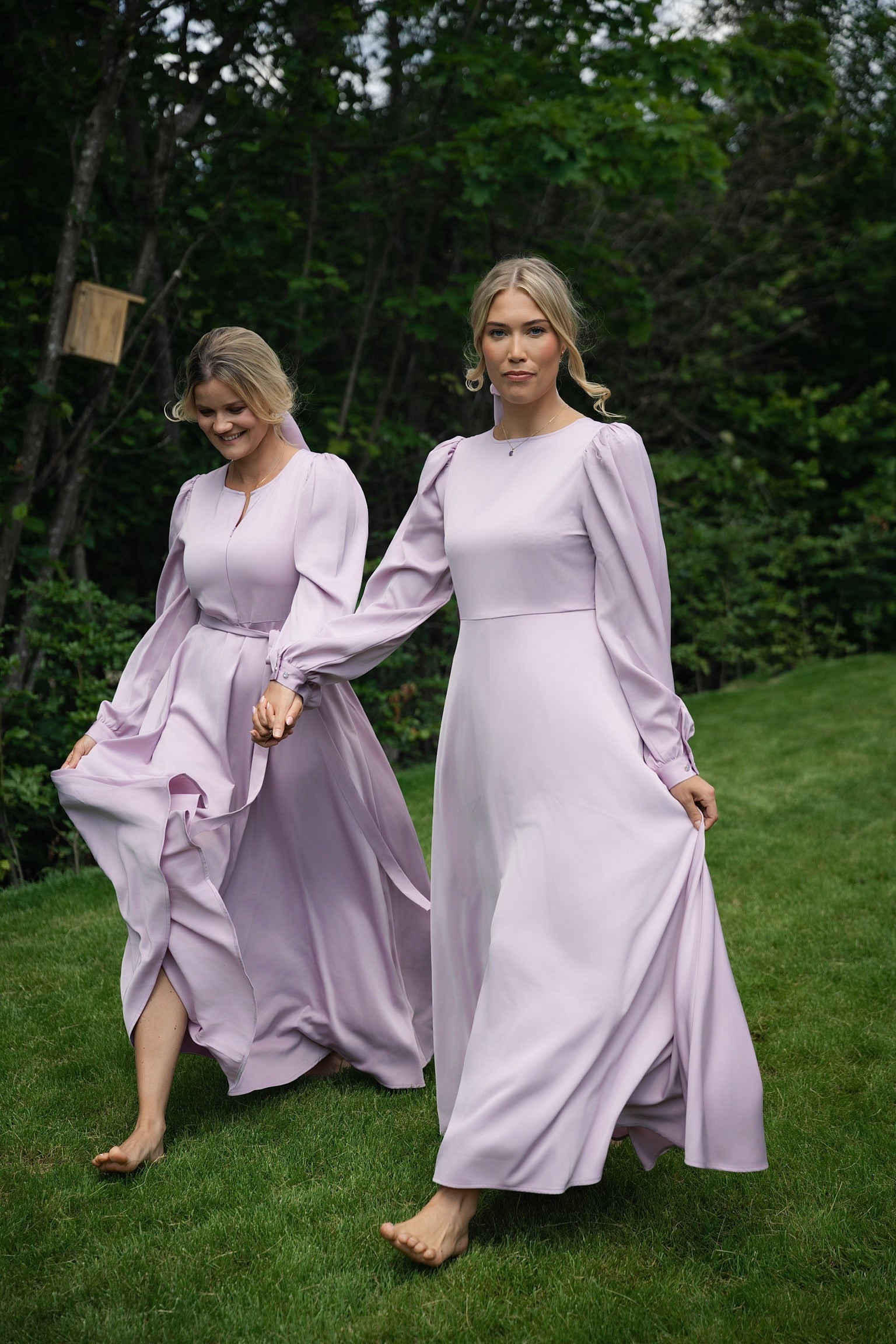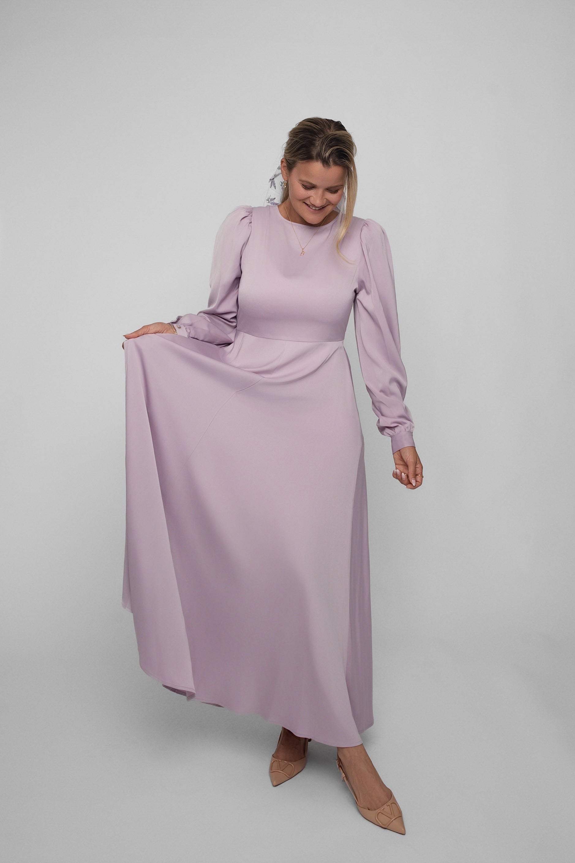 Madikken-klänningen i lila satin är skapad för dig som älskar tidlös elegans med en lekfull twist.