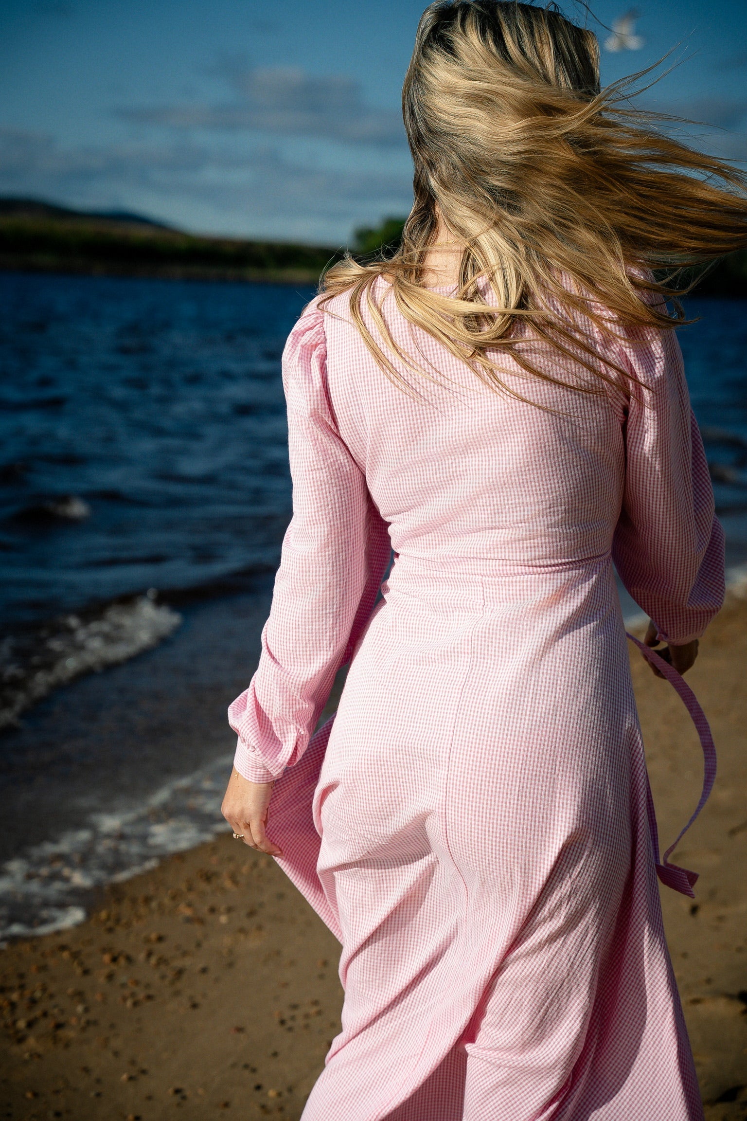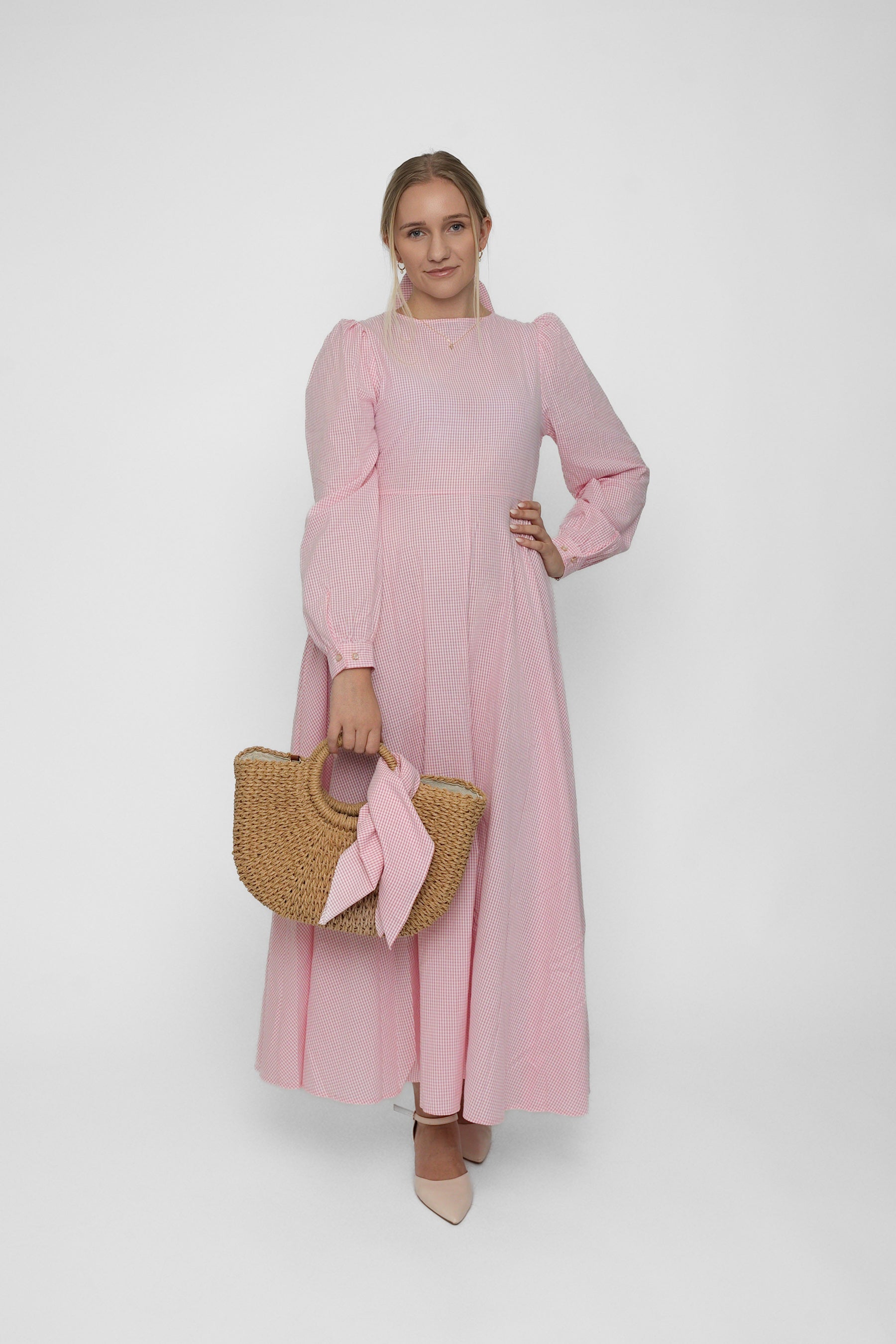 Finns i blått och rosa ginghammönster – ett mönster som aldrig går ur modet. Den matchande halsduken ger den sista touchen och fulländar outfiten.